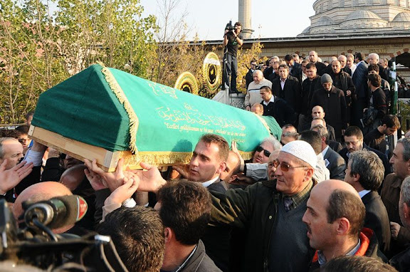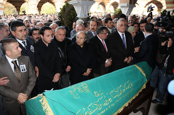 Tabut cenaze namazının ardından ilahiler eşliğinde cenaze aracına kadar taşınerken, Necati Şaşmaz da cenaze aracına binerek mezarlığa kadar gitti.